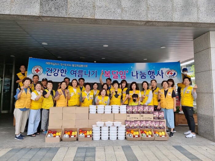 먼저 처인구 역북동에서는 대한적십자사 역삼봉사회(회장 박순자)가 삼계탕과 김치, 과일 등 140만원 상당의 복달임 음식을 정성껏 준비해 38명의 홀로 어르신에게 전달했다.