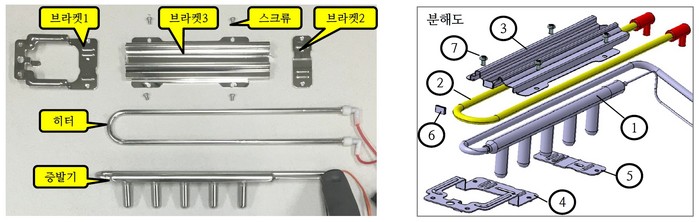 ▲코웨이 3종 얼음정수기 냉각구조물 부품 및 분해도. 자료제공 산업통상자원부. |