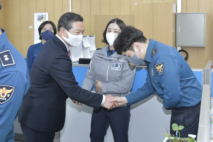또한 조재구 남구청장은 남부경찰서 건물과 옥상공원에 마련된 직원휴식공간도 두루 둘러보고, 112상황실을 방문해 직원들에게 ‘명품남구의 1순위는 안전한 남구인 만큼 남구 주민들의 안전과 행복을 위해 일하시는 직원들이 존경스럽고 항상 맡은 일에 최선을 다해 달라.’고 깊은 감사의 마음을 전했다.