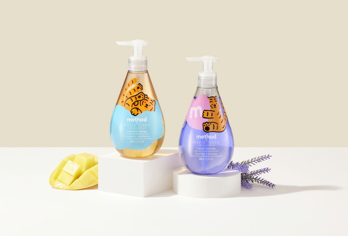 샌프란시스코 메소드 퍼퓸 하우스에서 조향한 세련된 향기와 스타일리시한 100% 재활용 플라스틱 용기를 특징으로 고객들의 사랑을 받아온 메소드 고보습 핸드워시는, 검은 호랑이의 해를 기념하여 진행된 무직타이거와의 협업을 통해 더욱 소장 가치를 높여 선보였다.