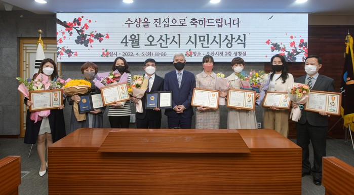 [로컬세계 김병민 기자]경기 오산시(시장 곽상욱)는 지난 5일 오산시청 상황실에서 '2022년 4월 오산시 시민시상식'을 개최했다고 6일 밝혔다.