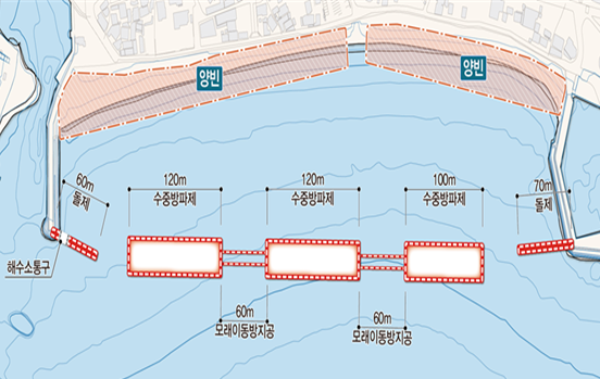‘기장군 임랑~문동지구 연안정비사업’에 투입되는 총사업비는 480억원으로 수중방파제 340m, 모래이동방지공 120m, 돌제 130m를 4년에 걸쳐 추진할 예정이다.