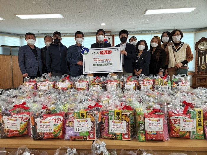 [로컬세계 양해수 기자]전북 군산시 나운1동은 어린이날 100주년을 맞아 주민자치위원회(위원장 임구환)가 관내 지역아동센터 4개소(백두산, 임마누엘, 풍성한, 한일) 이용 아동에게 160만원 상당의 과자선물 꾸러미를 마련해 전달했다고 6일 밝혔다.