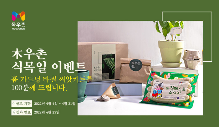 해당 프로모션은 목우촌 공식 SNS채널인 인스타그램, 네이버블로그에서 진행되며, 해당 SNS채널을 팔로우하고 이벤트 소식을 공유 후 댓글을 남기면 추첨을 통해 ▲바질 씨앗키트 ▲바질페스토 소시지 ▲BT21 캐릭터 상품을 총 171명에게 증정한다.
