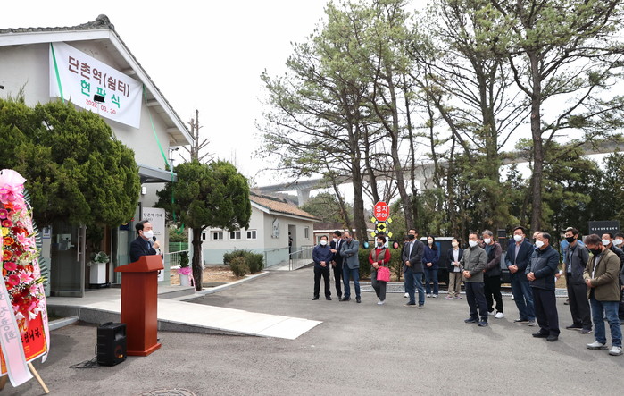 이번 개장식은 코로나19 상황을 고려해 주민자치회 위원들을 중심으로 그간의 경과보고를 전하고 현판제막 이후 변모한 단촌역 내부를 둘러보는 순서로 간단하게 진행됐다.