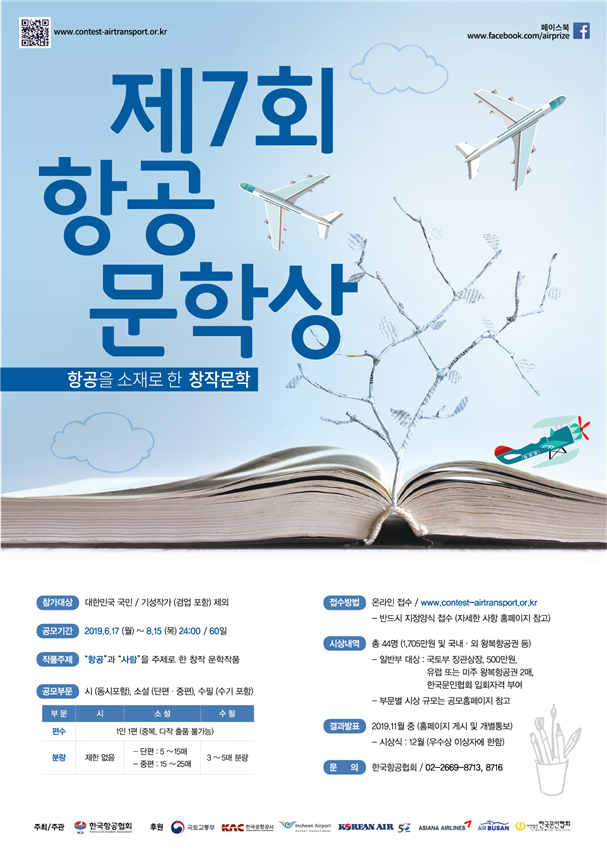 한편 항공문학상은 국토교통부와 한국공항공사, 인천국제공항공사, 대한항공, 아시아나항공, 에어부산 및 한국문인협회가 후원하고, 한국항공협회가 주최한다.
