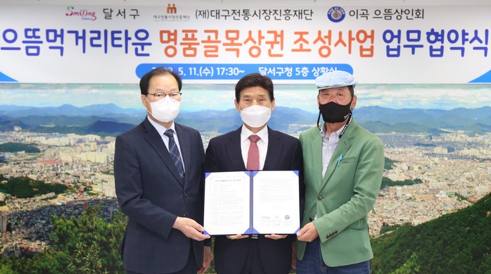 이태훈 달서구청장은 “이번 협약을 통해 이곡동 으뜸먹거리타운 상권의 활성화로 이어지길 바라며 코로나19로 어려움을 겪었던 지역 상인들을 위해 다양한 지원방안을 마련하겠다”고 밝혔다