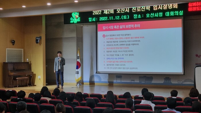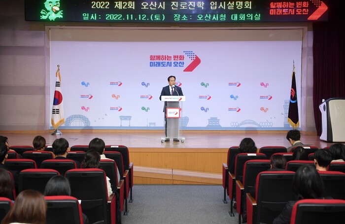 [로컬세계=김병민 기자]경기 오산시가 12일 시청 대회의실에서 350여 명의 중학생 및 학부모가 참석한 가운데 ‘2022년 오산시 진로진학 입시설명회’를 개최했다.