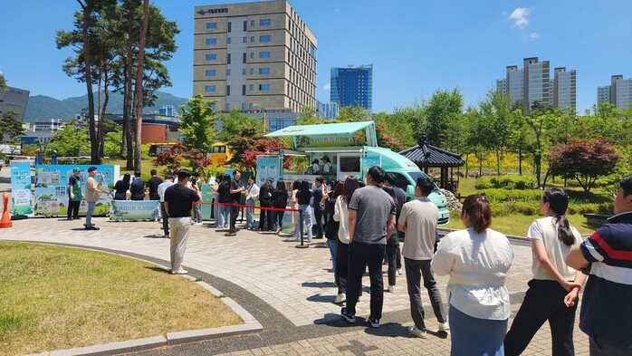 ▲ 도로교통공단은 E-순환거버넌스와 함께 직원 인식개선을 위한 커피차 운영과 자원순환 캠페인을 진행하고 있다. <사진제공=도로교통공단> |