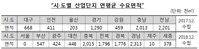 ▲시‧도별 산업단지 연평균 수요면적.(국토부 제공) |
