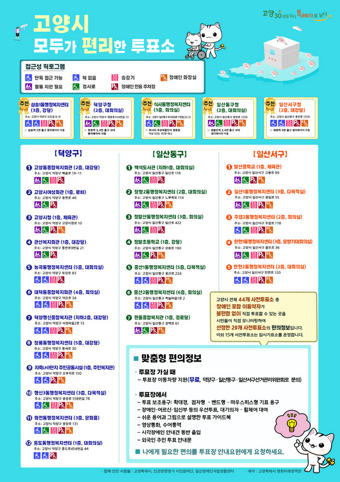 시는 이번 인권영향평가를 통해 고양시 전체 44개소 중 누구나 어려움 없이 투표가 가능하다고 판단한 사전투표소 29곳을 선정하고 픽토그램으로 만들었다.