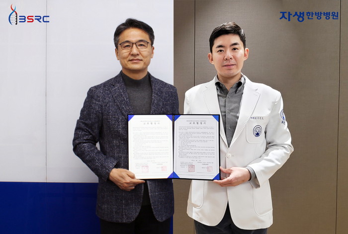 자생한방병원과 유전자동의보감사업단이 천연물 한방 소재의 과학화와 표준화를 위한 연구에 힘을 모은다. 자생한방병원(병원장 이진호)은 27일 과학기술정보통신부 산하 유전자동의보감사업단(단장 이도헌)과 한방 소재 연구 협력 및 상호교류를 위한 업무협약(MOU)을 체결했다고 밝혔다.