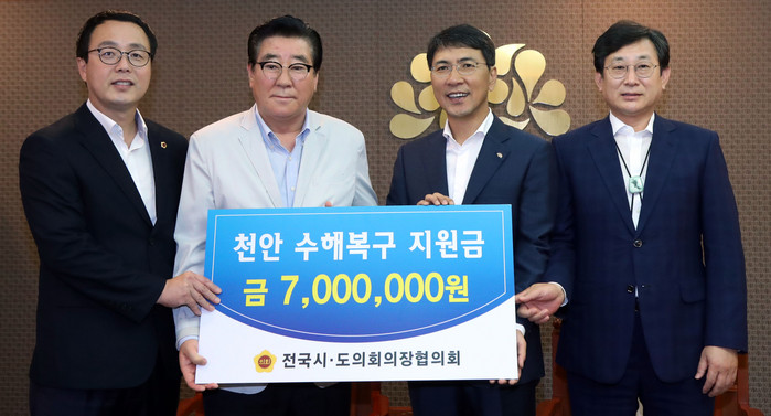 이번 위문금 전달은 전국시.도의회의장협의회에서 실시하는 것으로 윤석우 전국시도의회의장협의회 회장과 김경훈 대전시의회 의장이 함께 했다.