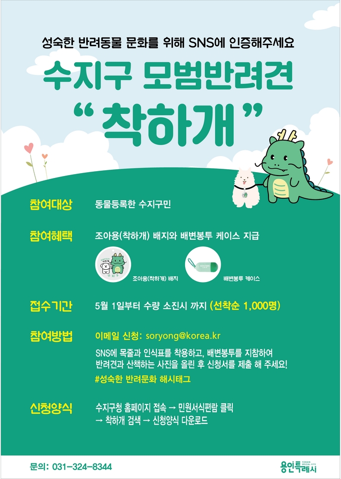 [로컬세계 김병민 기자]경기 용인시 수지구는 올바른 반려동물 문화 확산을 위해 '착하개' 인증을 진행한다고 4일 밝혔다.