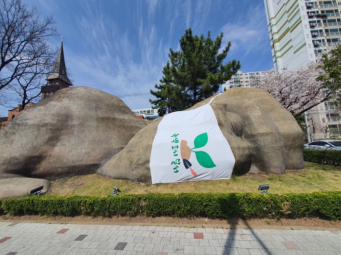 달서구는 무형 홍보대사로 활약하는 ‘2만년의 역사가 잠든 곳’ 조형물에 ‘녹색 도시 달서’ 마스크를 쓴 퍼포먼스를 진행한다. 달서구가 녹색 도시로의 전환을 위한 구민들의 공감대 확산과 함께 자발적 참여를 유도하기 위해 준비했다.