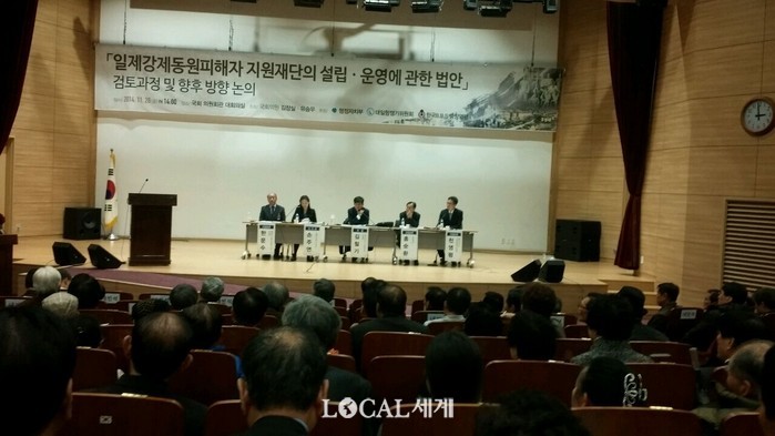 [로컬세계 김정태 기자] 새누리당 김장실 의원과 유승우 의원이 공동 주최한 ‘일제강제동원피해자 지원재단의 설립ㆍ운영에 관한 법안’에 관한 국회 토론회가 500여명의 유족과 관계자들이 참석한 가운데 지난 달 28일 국회에서 열렸다.