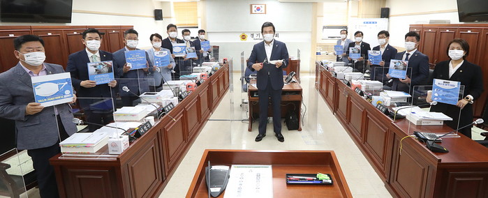 [로컬세계 고기훈 기자]경기도의회 도시환경위원회(장동일 위원장)가 4일 도시위 회의실에서 ‘도시환경위원회와 함께하는 마스크 귀걸이 자르기 캠페인’을 개최했다.
