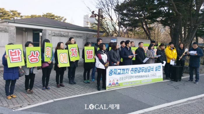 이어 “중학교에 입학하는 학생과 학부모들은 대전시교육청과 대전시의 모르쇠로 당장 급식비를 걱정해야 할 처지에 놓여있다. 대전을 둘러싼 충남, 세종, 충북, 전북의 모든 중학교에서 무상급식을 넘어 친환경무상급식을 실현하고 있는 상황에서 대전의 중학생들은 지역이 다르다는 이유로 차별받고 있다. 이는 엄연한 학생인권적 사안이고 차별이라 하지 않을 수 없다”고 목소리 높였다.