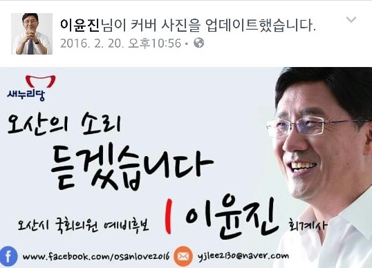 ▲이윤진 예비후보 페이스북에 선거 슬로건이 걸려있다. |