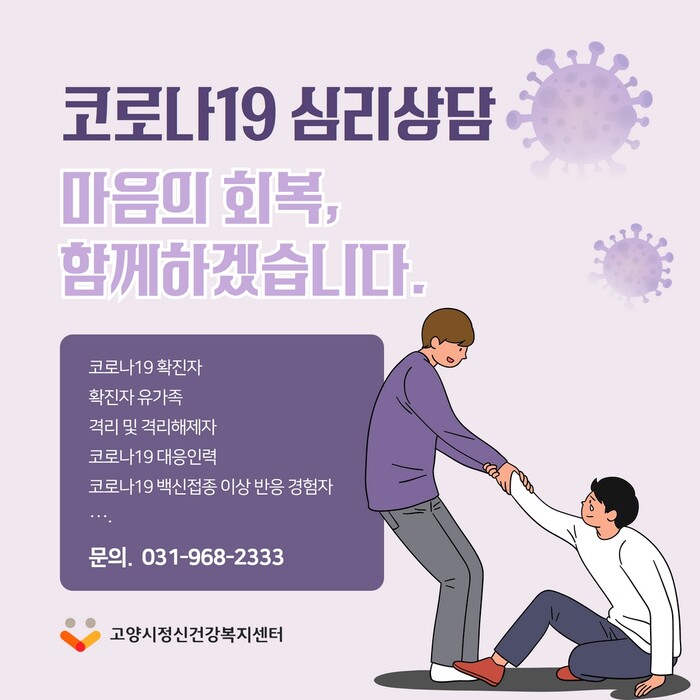 [로컬세계 = 이영원 기자]경기 고양특례시(시장 이동환) 정신건강복지센터가 코로나19 백신접종 이상 반응 경험자에게도 심리지원 서비스를 지원한다.