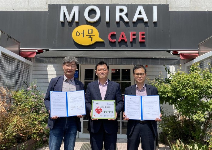 ▲송북동 지역사회보장협의체 3개 상점과 사랑나눔가게 협약 체결. 평택시 제공 |