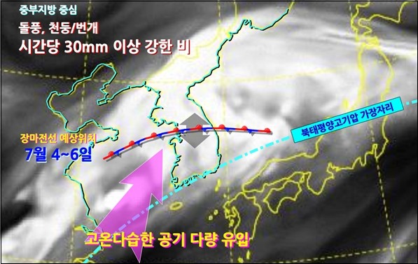 ▲7월 4일~6일 장마 예상 모식도. 자료제공 기상청. |