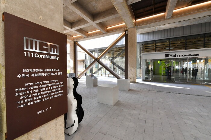 111CM은 연조제초창 건물을 개보수해 조성했다. 1971년 문을 연 연초제조창은 32년간 가동되며 수원시 지역경제의 한 축을 담당했다. 하지만 2003년 전매청이 민영화되면서 문을 닫았고, 20년 가까이 방치돼 있었다.
