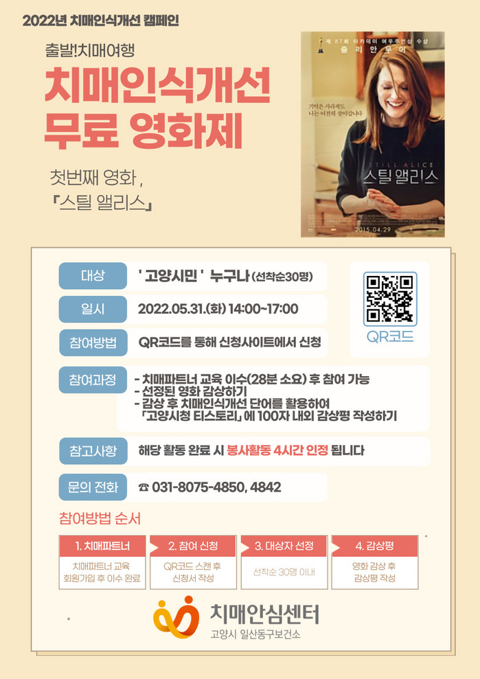 ‘출발!치매여행’은 치매 관련 영화를 통해 치매에 대한 부정적 인식을 해소하고 치매 친화적 지역사회를 조성하는 영화제 프로그램이다.