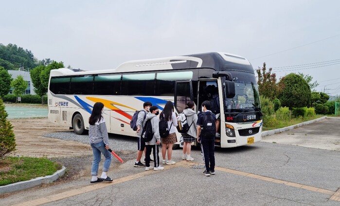 ▲ 통학버스로 등원하는 파평중학교 학생들. 파주시 제공 |