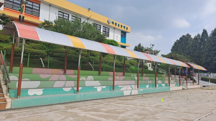 ▲ 파주시는 교육환경개선사업의 일환으로 덕암초등학교에 차양막을 설치했다. 파주시 제공 |