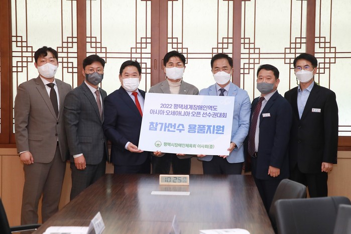 [로컬세계 김병민 기자]경기 평택시 장애인체육회는 지난 6일 평택시청에서 '2022 평택세계장애인역도아시아-오세아니아 오픈 선수권대회' 참가선수 후원용품 전달식을 개최했다고 7일 밝혔다.