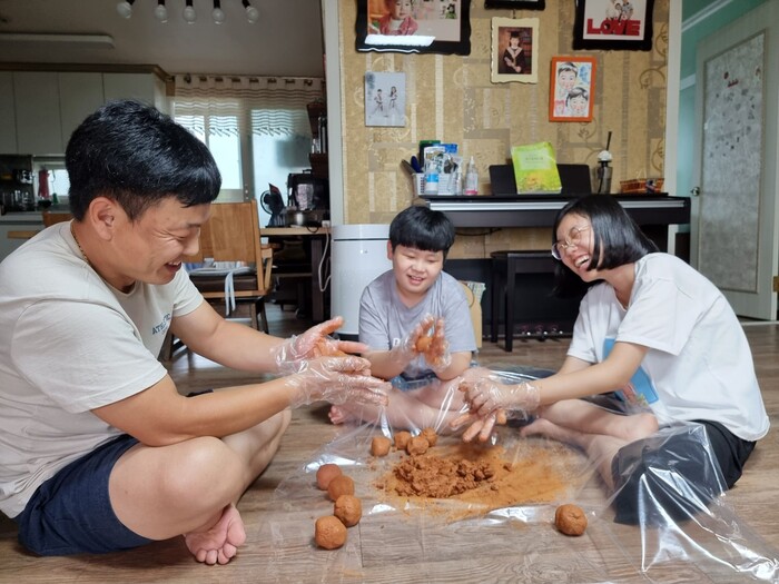 ▲LG유플러스가 하천 수질 정화 및 탄소 흡수원 확충에 도움을 주는 EM흙공 던지기 활동을 통해 ESG경영을 강화한다고 31일 밝혔다. 사진은 LG유플러스 임직원 가족이 EM흙공을 함께 만들고 있는 모습. |
