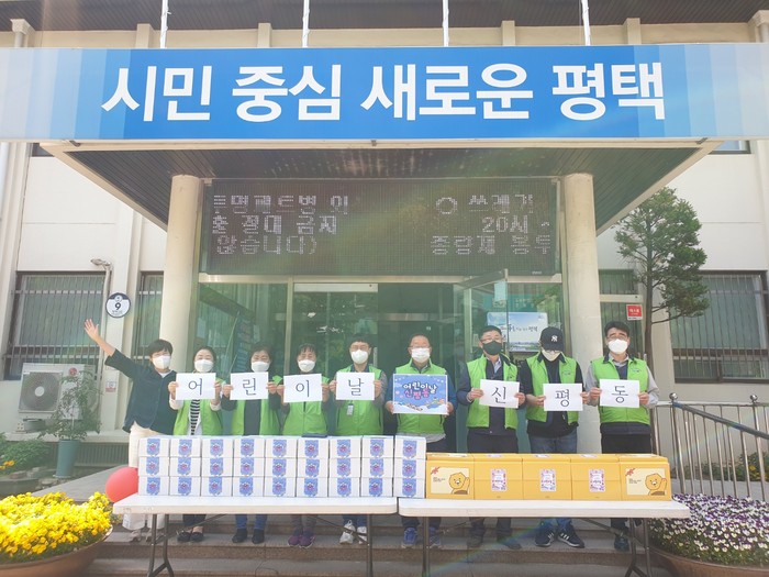 ▲신평동지역사회보장협의체 저소득 아동에 어린이날 선물 전달. 평택시 제공 |