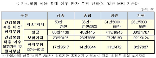 먼저 뇌·뇌혈관·특수 MRI 검사에 대해 건강보험이 확대 적용된다.