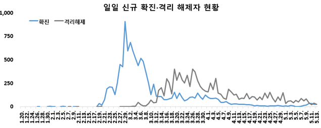 ▲확진자 일별 추세 (5.13. 0시 기준, 10,962명) |