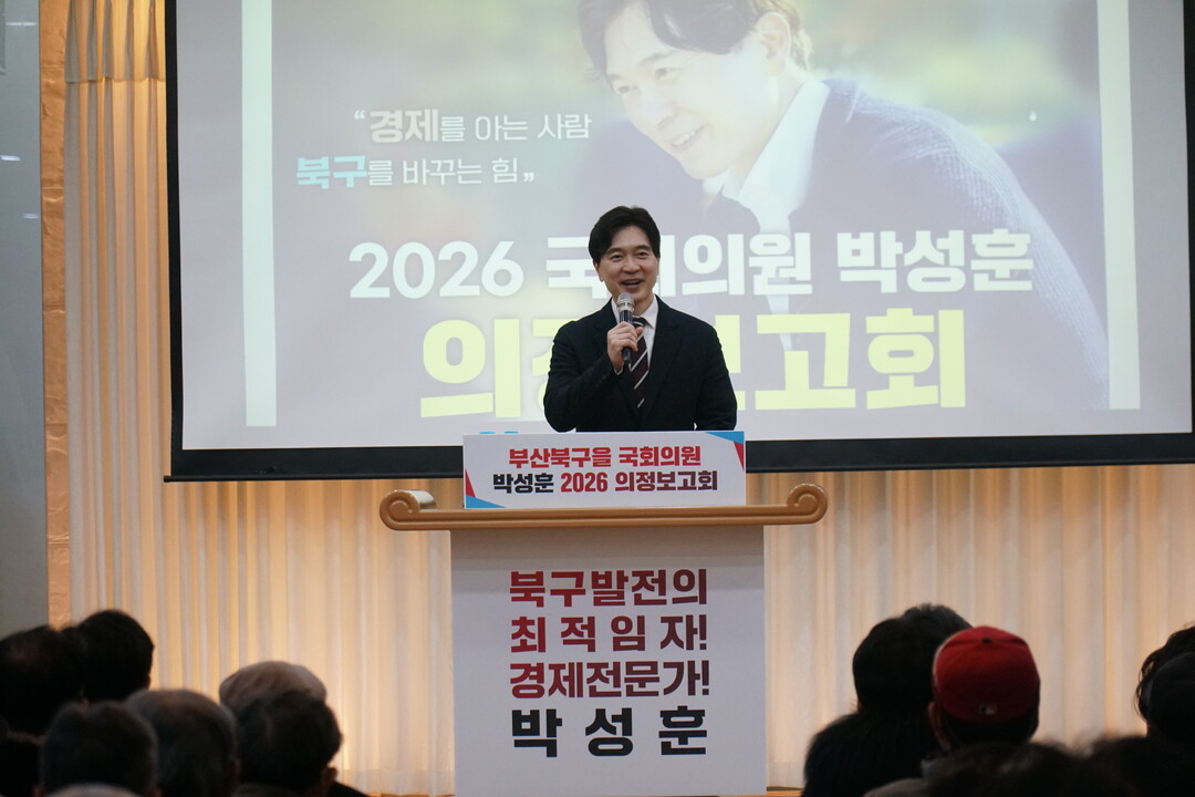 [로컬세계 = 사진·김의준 기자] 국민의힘 박성훈 의원(부산 북구을)은 21일(토) 오후 2시, 부산화명새마을금고 본점에서 열린 ‘2026 종합의정보고회’를 500여 명의 지역 주민과 당원들의 뜨거운 성원 속에 성황리에 마쳤다고 밝혔다.