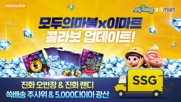 넷마블(대표 권영식, 도기욱)은 모바일 캐주얼 보드게임 ‘모두의마블’에서 이마트와 컬래버레이션 업데이트를 실시했다고 22일 밝혔다.