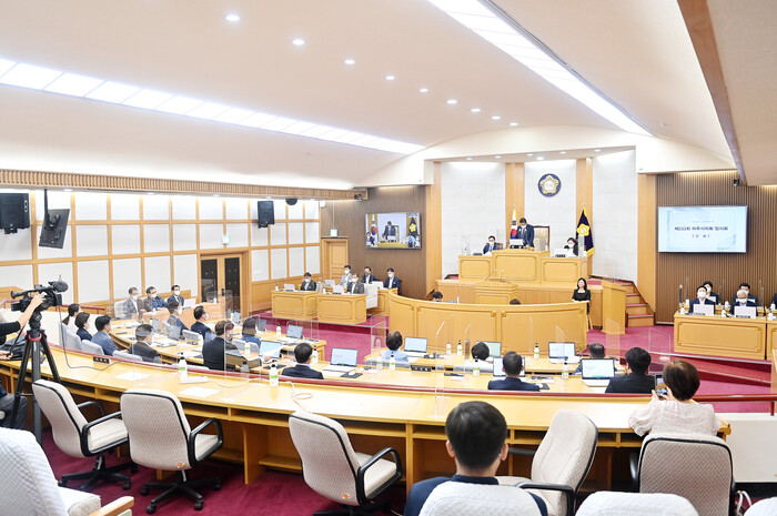 이성철 의장은 “이번 임시회 시정업무보고와 안건 심사를 위해 수고하신 동료 의원님들과 관계 공무원들께 진심으로 감사드린다”며 “며칠간 계속된 집중호우로 인한 시민들의 피해 최소화를 위해 애쓰는 공직자 여러분들과 자원봉사자들의 노고에 감사드린다”고 전했다.