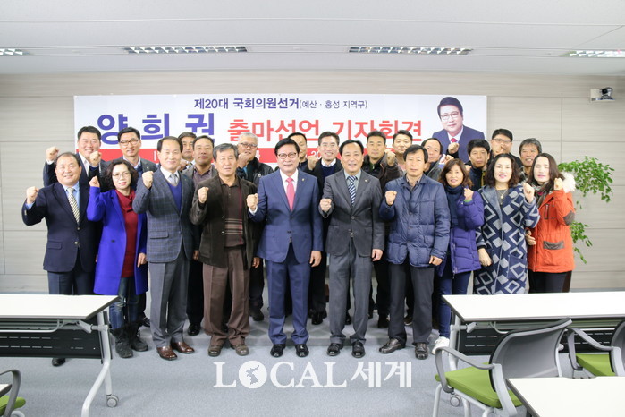 [로컬세계 오영균 기자] 양희권 페리카나 회장이 8일 충남도청 기자브리핑실에서 기자회견을 열고 “더 큰 충남 희망찬 홍성·예산의 새로운 미래를 열기 위해 내년 4 13 총선에 나서겠다”고 공식 출마선언을 했다.