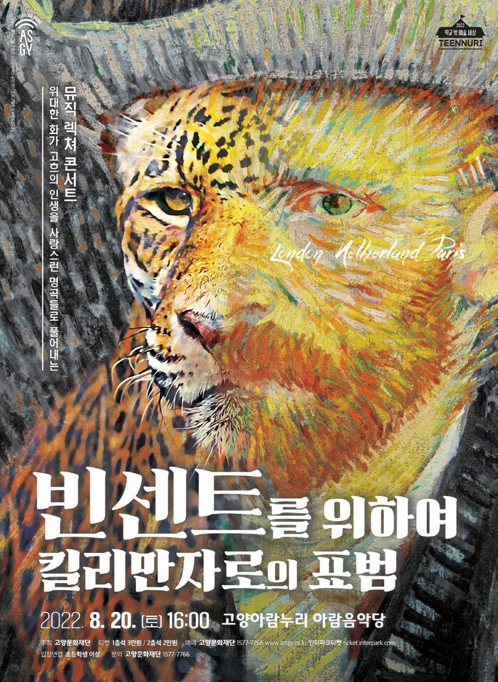 [로컬세계=이영원 기자] 경기 고양문화재단(대표이사 정재왈)은 반 고흐의 예술적 생애를 주제로 한 '빈센트를 위하여_킬리만자로의 표범'을 오는 8월 20일 오후 4시, 고양아람누리 아람음악당에서 개최한다.
