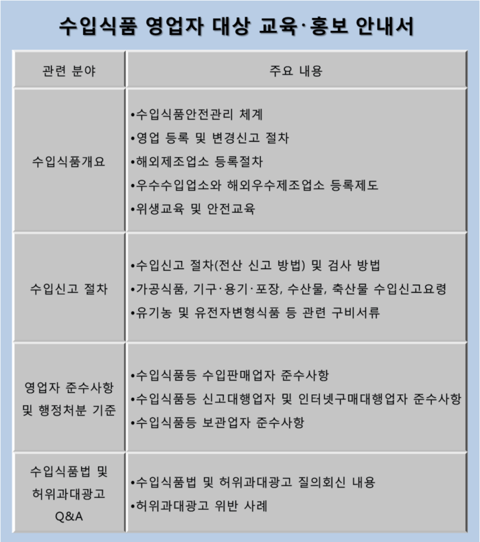 ▲수입식품 영업자 대상 교육‧홍보 안내서(식약처 제공) |