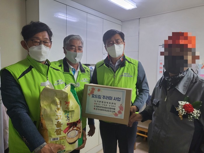 [로컬세계 김병민 기자]경기 광주시 도척면과 도척면 지역사회보장협의체는 지난 3일 관내 홀몸 어르신 20분에게 카네이션을 직접 달아드리고 따뜻한 마음이 담긴 ‘효드림 꾸러미’와 백미 10㎏을 전달했다.