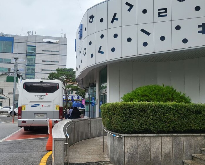 ▲을지연습 연계인 ‘전시 혈액 확보를 위한 채혈 훈련’ 을 위해 대한적십자사 버스가 대기하고 있다. 여주시 제공 |