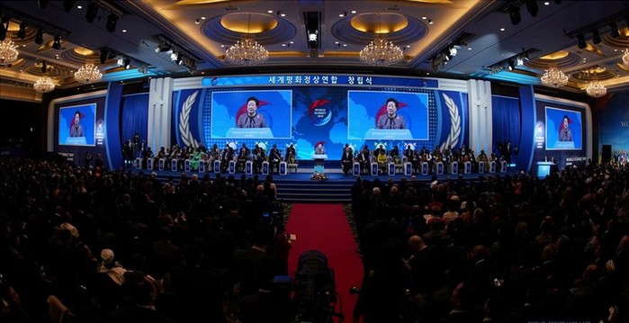 ▲지난 8일 서울 잠실 롯데호텔에서 열린 세계평화정상연합 창립식의 장면.(사진=권인진 기자) |
