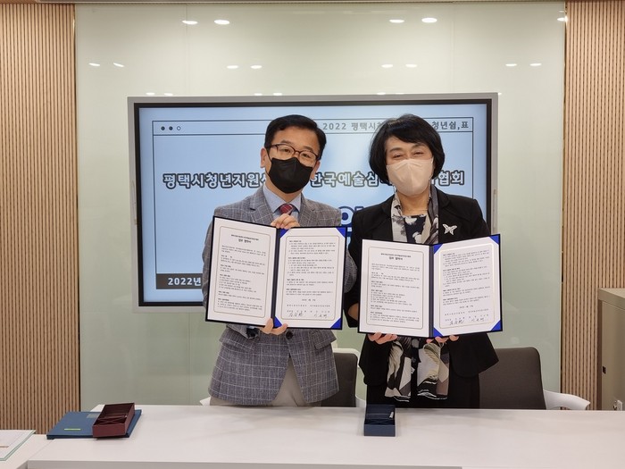 [로컬세계 김병민 기자]경기 평택시청년지원센터(센터장 김승현)와 한국예술심리상담사협회(회장 이근매)는 지난 19일 평택시청년지원센터에서 업무협약(MOU)을 체결했다.