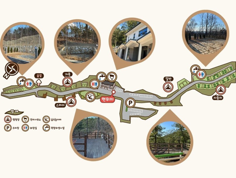 야영장은 자동차야영장 7면, 일반야영장 4면, 가족야영장 8면, 스카이야영장 4면 등 총 23면 규모로 조성됐다. 관리사무소 1동과 복합위생시설 3동을 갖추고 숲속 데크 사이트와 산책로, 휴식 공간 등 자연 친화적 환경을 마련해 가족 단위 방문객과 캠핑 이용객에게 힐링 공간을 제공할 것으로 기대된다.