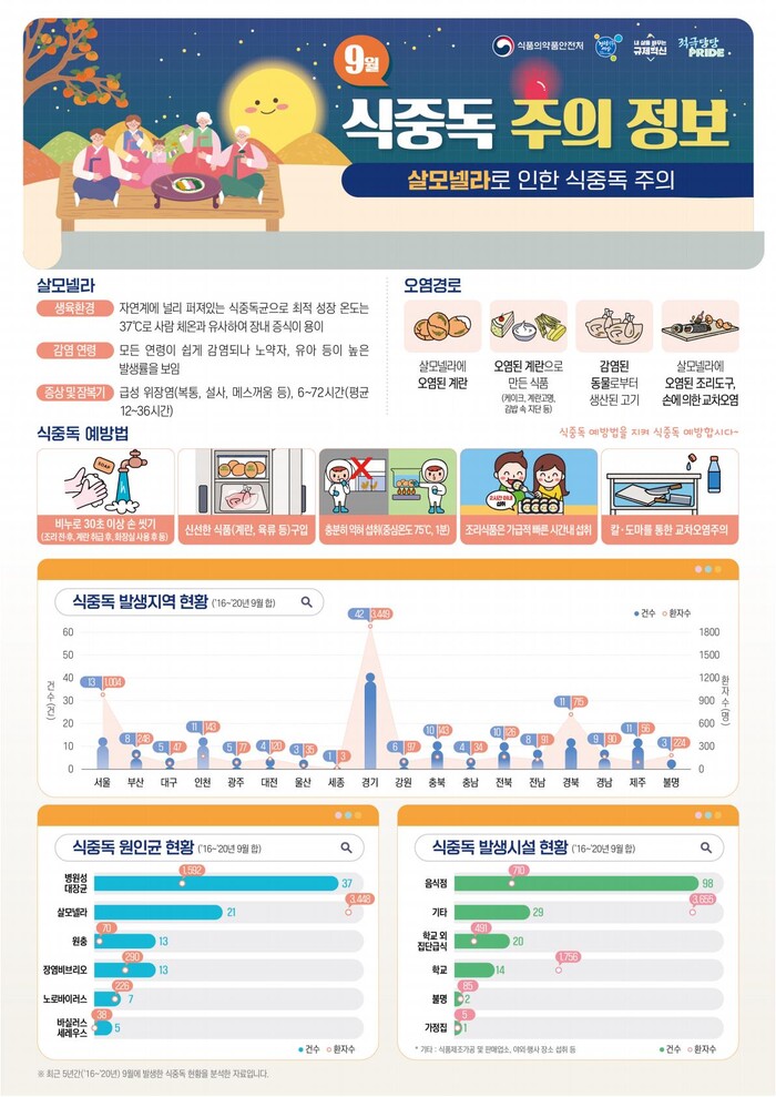 9월은 살모넬라에 오염된 계란 및 계란으로 만든 식품 및 손, 조리도구에 의한 교차오염 발생이 쉬운 시기이기 때문이다.