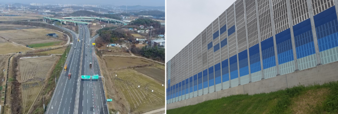 ▲서평택JCT 전경(왼쪽)과 방음벽. |
