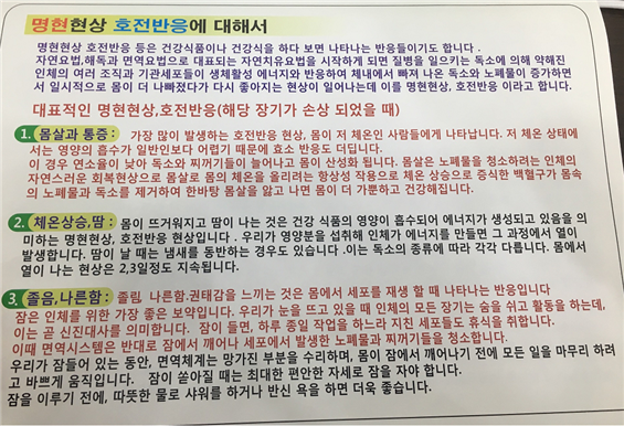 ▲판매업체의 명현현상 거짓 홍보자료.(식약처 제공) |