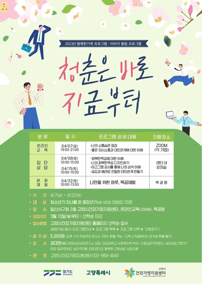 참여 대상자는 청소년기 자녀를 둔 아버지 15명이며, 참가비는 5,000원이다.